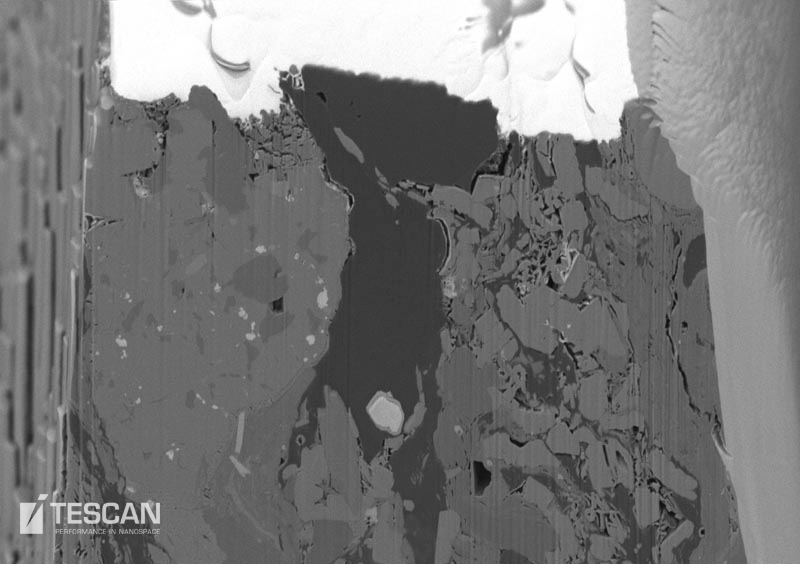 - FIB cross-section of an oil shale sample ready for 3D data collection