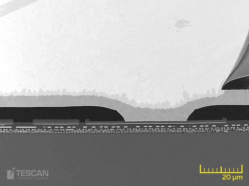 - Der TESCAN EBIC-Detektor kann für elektrische Tests eingesetzt werden. Gründlichere Tests erfordern die Analyse der Lötkugeln selbst.