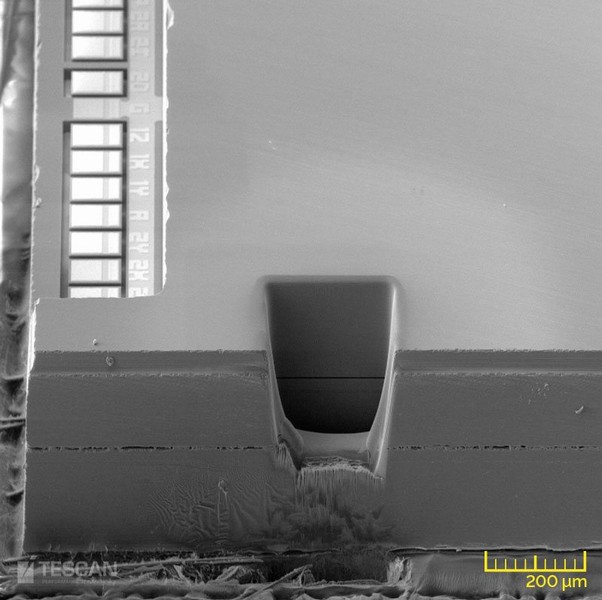 - Deep trench milled in a MEMS with plasma FIB