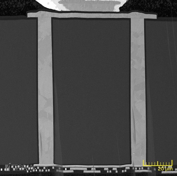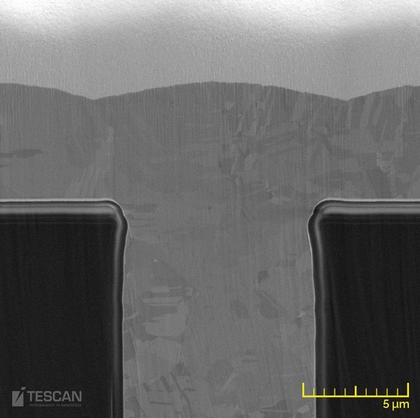 TESCAN can provide the semiconductor and packaging industries with a diverse range of systems and detectors to implement analytical techniques to study stress levels and Cu extrusion in TSVs. Our range of high-performance SEMs allows for high and ultra high-resolution imaging of TSV extrusion and physical inspection on its cross-section. Dual-beam systems allow for pinpointing failure sites and subsequent local inspection and characterisation of these failure sites with a single instrument. TESCAN Xe plasma FIB-SEM systems offer the essential power and speed for performing high-throughput analysis in TSVs.