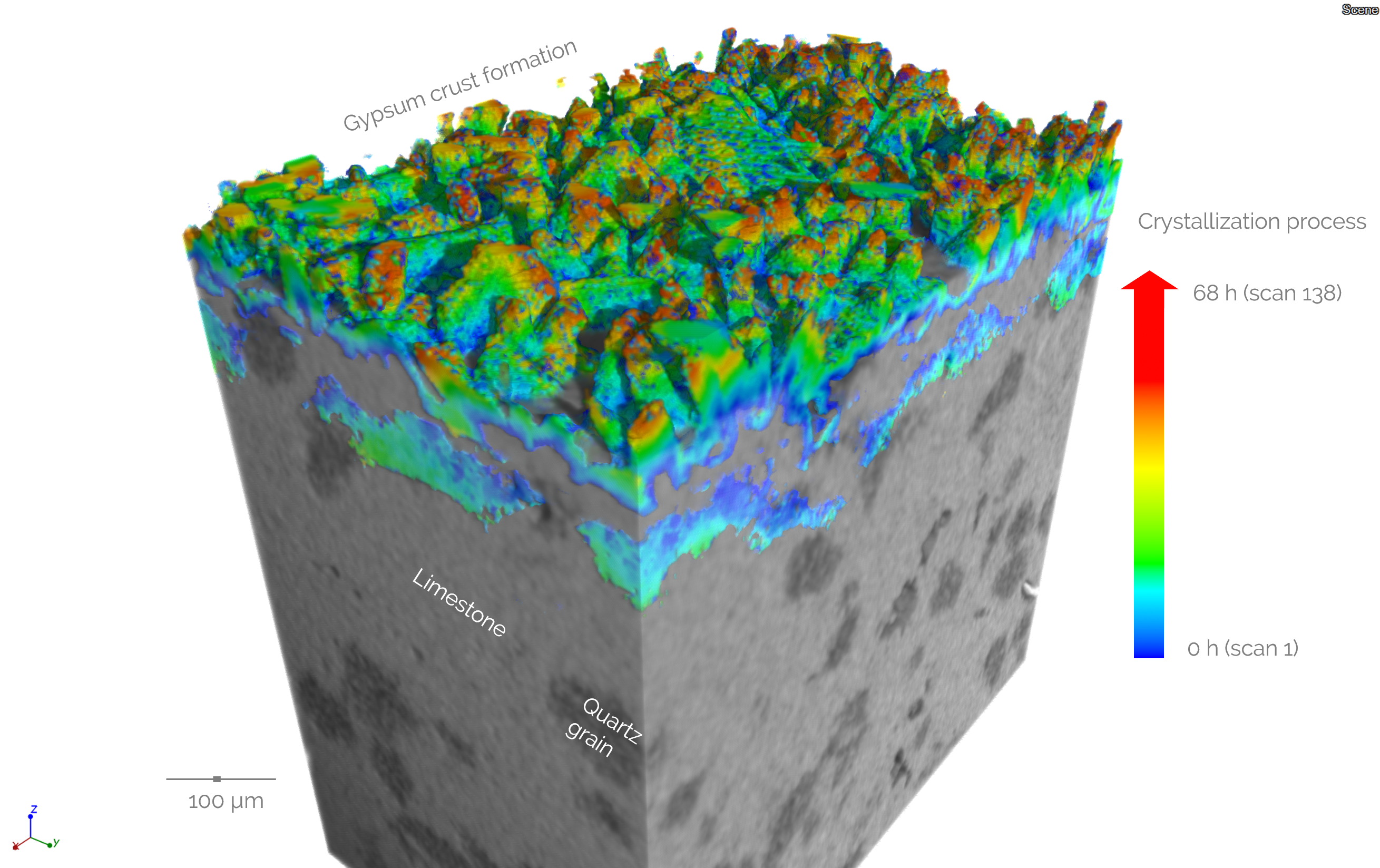 - Mineralização in situ de calcário – formação de crosta de gesso