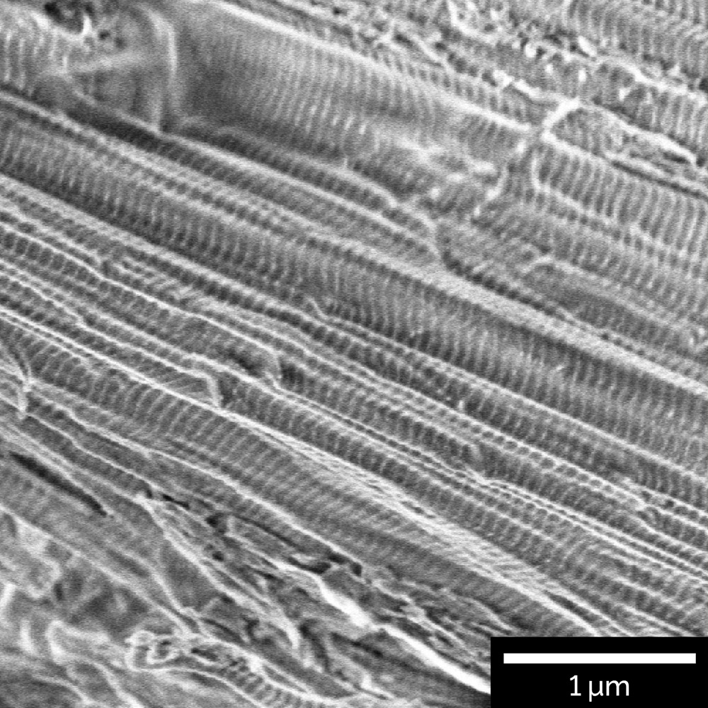 Collagen fibers visualized with Beam deceleration mode at accelerating voltage of 100 eV