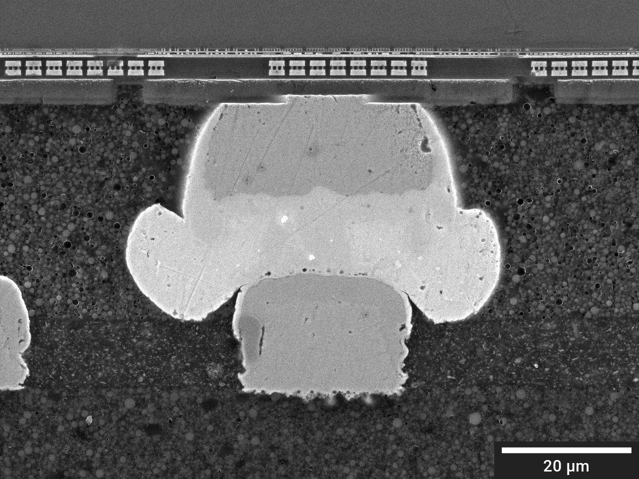 - Sección transversal de bola de soldadura pulida mecánicamente